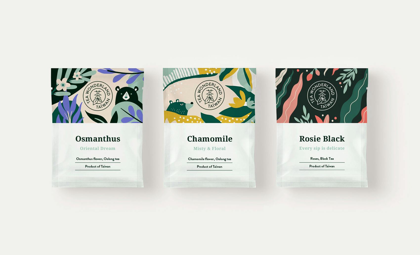 Brand identity of Tea Wonderland, an organic tea brand from the high misty mountains of Taïwan – Creative concept, art direction, brand identity, logo design